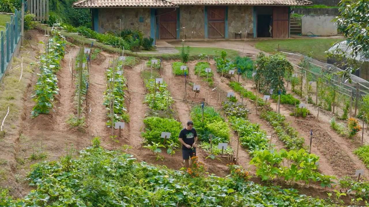 Rafa Costa e Silva na horta, no Vale das Videiras, Petrópolis, que abastece o Lasai Restaurante com produtos orgânicos. (Imagem: Rogerio Resende)